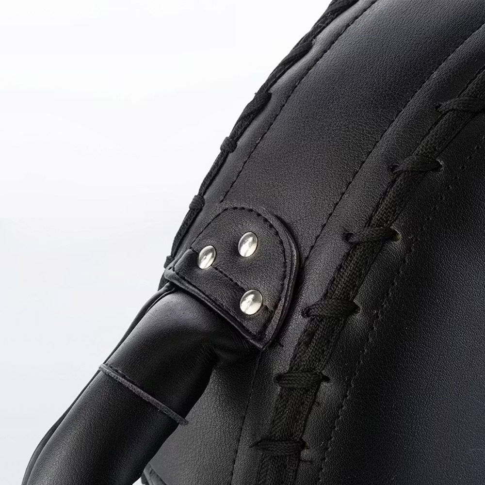 Designed for speed work, tight movements and accurate strikes, the Umer Well Apex Circular Strike Shield is constructed to withstand the most powerful blows during countless training sessions. The two solid, conveniently placed, handles either side of the shield offers a secure hold whilst, allowing the holder to position themselves in a variety of tight angles. The perfect strike shield for a number of techniques and styles to be practiced, the circular target demands fast and precise punches or kicks from the striker. The high density foam core also provides the ultimate shock absorption, minimising the force felt by the holder. Easy to wipe clean before and after use. Nama Hideâ„¢ leather. Dimensions: 38cm high x 38cm wide x 8cm depth.