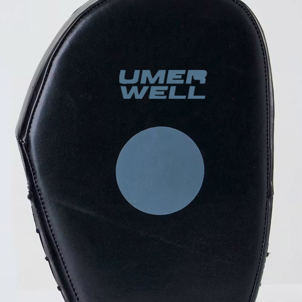 Designed to withstand powerful blows, these long-lasting Umer Well Club Focus Pads will survive countless training sessions. Ideal for coordination training, speed work and power drills, these super light, shock absorbent, focus pads are an incredibly efficient pair to use during intense training sessions. With a flat strike surface and target circle, these focus pads demand fast and precise punches from the striker. The adjustable Velcro wrist strap offers a comfortable fit, without the chance of slipping when struck. Nama Hideâ„¢ leather, that’s easy to wipe clean before and after use. Sold as a pair. Dimensions: 30cm x 20cm x 6cm.