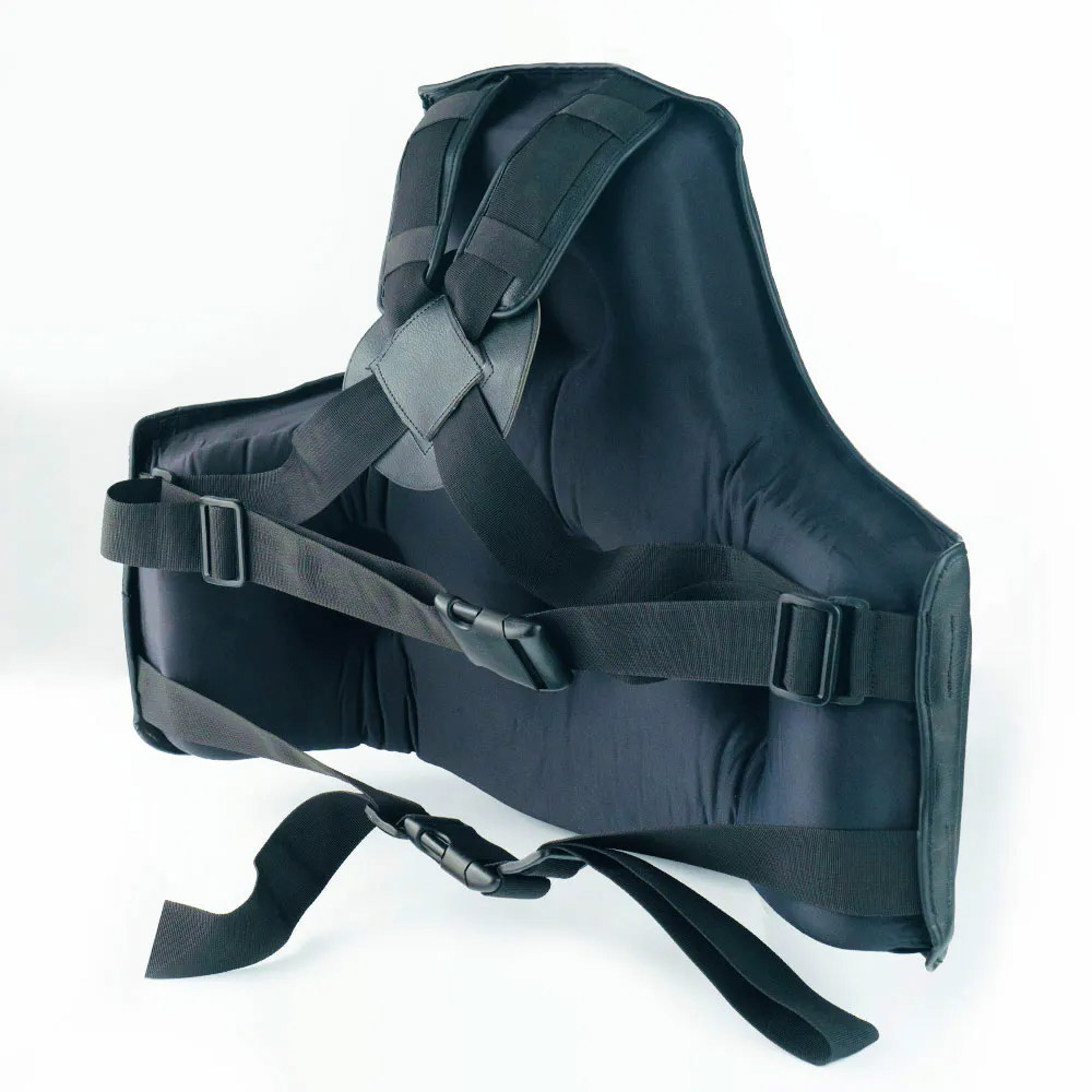 Sturdy and robust, it absorbs those hard body strikes. It has a raised side and mid-section, excellent for knee, round kicks and other undesirable blows. Extra thick ranging between 3 to 4 inches. Double snap clicks to the rear. Padded shoulder straps for extra comfort. Made from Nama Hideâ„¢ Leather, that’s easy to wipe clean before and after use. One size fits all.