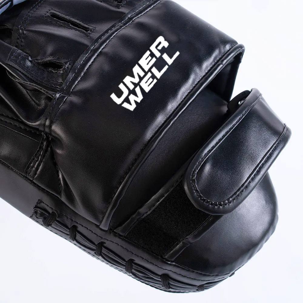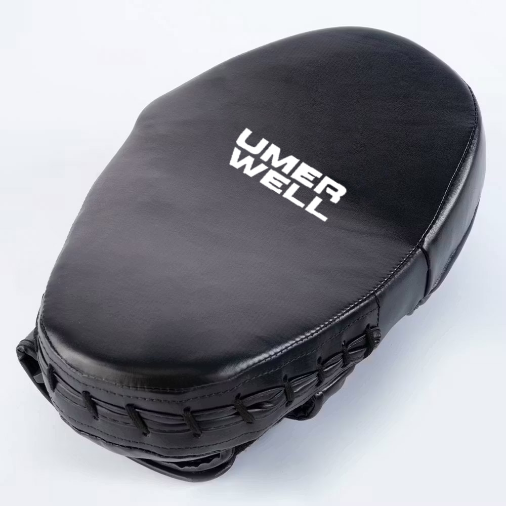 Designed to withstand powerful blows, these long-lasting Umer Well Cyclone Focus Pads will survive countless training sessions. Ideal for coordination training, speed work and power drills, these super light, shock absorbent, focus pads are an incredibly efficient pair to use during intense training sessions. The ventilated air holes prevent moisture build-up and improve air flow; whilst, the adjustable hook and loop Velcro wrist strap offers a comfortable fit, without the chance of slipping when struck. Nama Hideâ„¢ leather, that’s easy to wipe clean before and after use. Sold as a pair. 215g each.