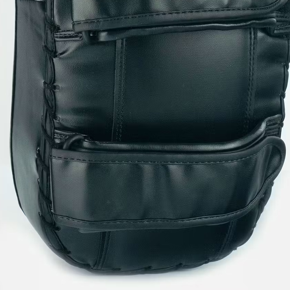 Constructed from Nama Hideâ„¢ Leather. Includes two Velcro adjustable straps for precise fit and stability. Each strap is padded, double stitched and reinforced onto the main body for longevity. A soft panel to the rear reduces abrasion. Curved face to absorb powerful blows, perfect for explosive kicks, knees, elbows, hooks and upper cuts. Ideal for coaching and developing a fighter’s skill. Easy to wipe clean before and after use. Front panel: 35cm by 19cm and 8.5cm in depth. Sold in pairs.