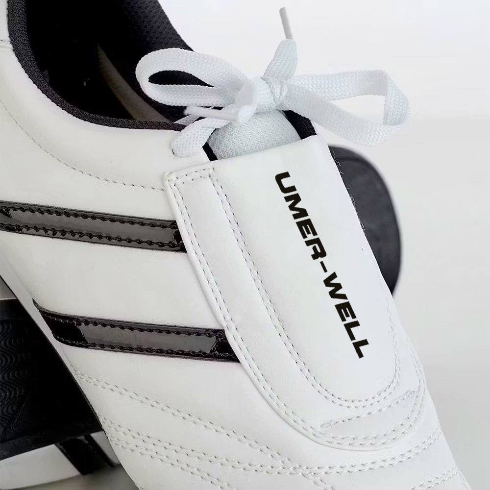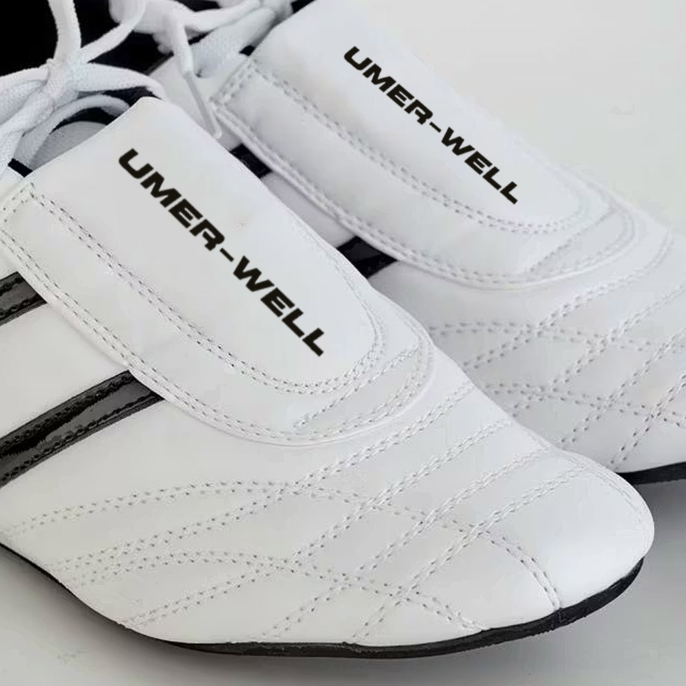 The Umer Well Martial Arts Training Shoes are a versatile choice for both martial arts and casual wear. Designed for performance and comfort, these shoes feature a thin wedge-shaped sole and a circular pivot point for improved mobility during kicks and spins. The slip-on design with double stripes offers convenience and style, while the soft Nama Hideâ„¢ leather provides a clean, durable finish. Ideal for those seeking a narrow fit.