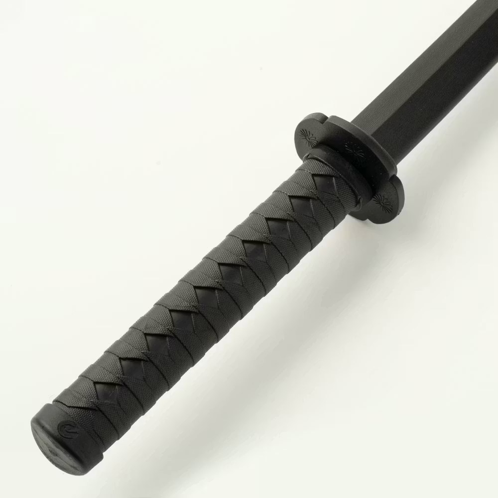 Designed for demonstrations, weapons training and light sparring. Made of polypropylene plastic, the Umer Well Plastic Bokken is virtually unbreakable and a much more durable material compared to traditional wooden training aids. The bokken is slightly flexible allowing for better shock absorption when striking hard objects or sparring with other training weapons. Easy to wipe clean before and after use. Tsuba and rubber ring included. Dimensions: 98cm long. 500g.